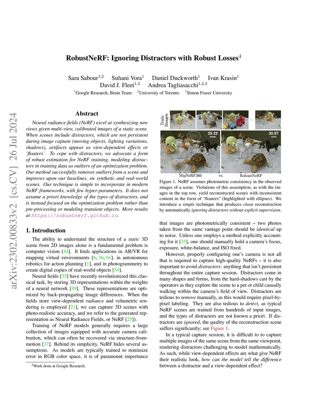 RobustNeRF: Ignoring Distractors with Robust Losses