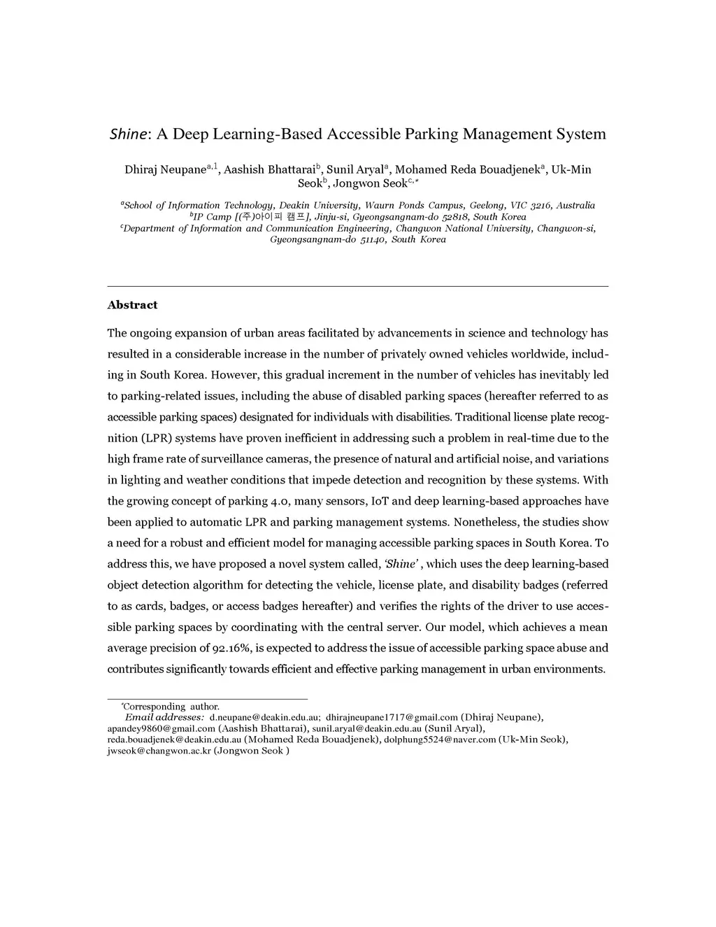 SHINE: Deep Learning-Based Accessible Parking Management System