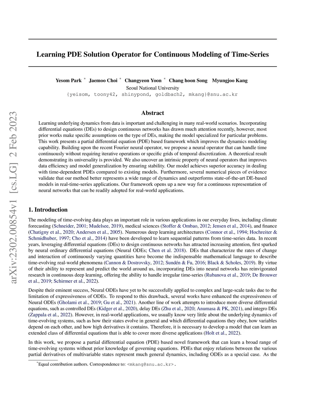 Learning PDE Solution Operator for Continuous Modeling of Time-Series
