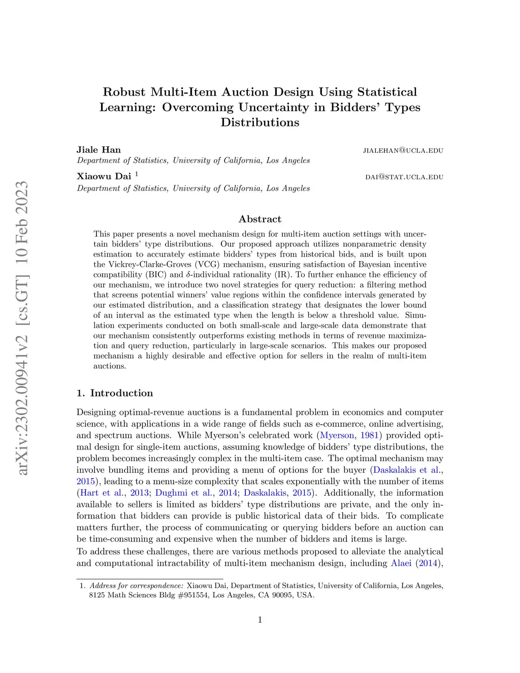 This paper presents a novel mechanism design for multi-item auction settings with uncertain bidders' type distributions. Our proposed approach utilizes nonparametric density estimation to accurately estimate bidders' types from historical bids, and is built upon the Vickrey-Clarke-Groves (VCG) mechanism, ensuring satisfaction of Bayesian incentive compatibility (BIC) and -individual rationality (IR). To further enhance the efficiency of our mechanism, we introduce two novel strategies for query reduction: a filtering method that screens potential winners' value regions within the confidence intervals generated by our estimated distribution, and a classification strategy that designates the lower bound of an interval as the estimated type when the length is below a threshold value. Simulation experiments conducted on both small-scale and large-scale data demonstrate that our mechanism consistently outperforms existing methods in terms of revenue maximization and query reduction, particularly in large-scale scenarios. This makes our proposed mechanism a highly desirable and effective option for sellers in the realm of multi-item auctions.