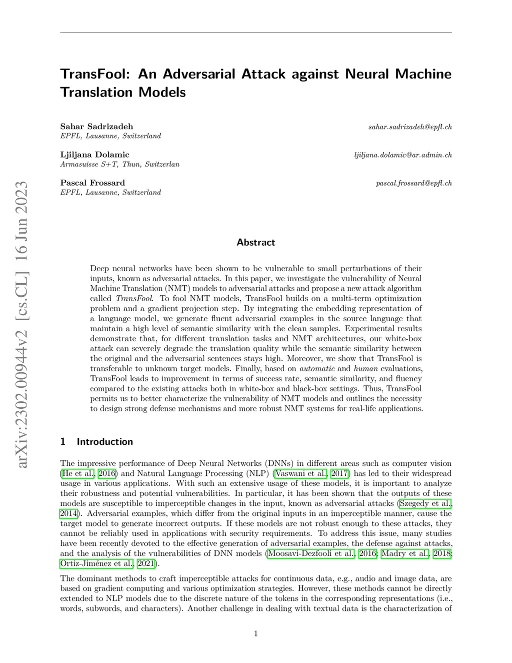 TransFool: An Adversarial Attack against Neural Machine Translation Models