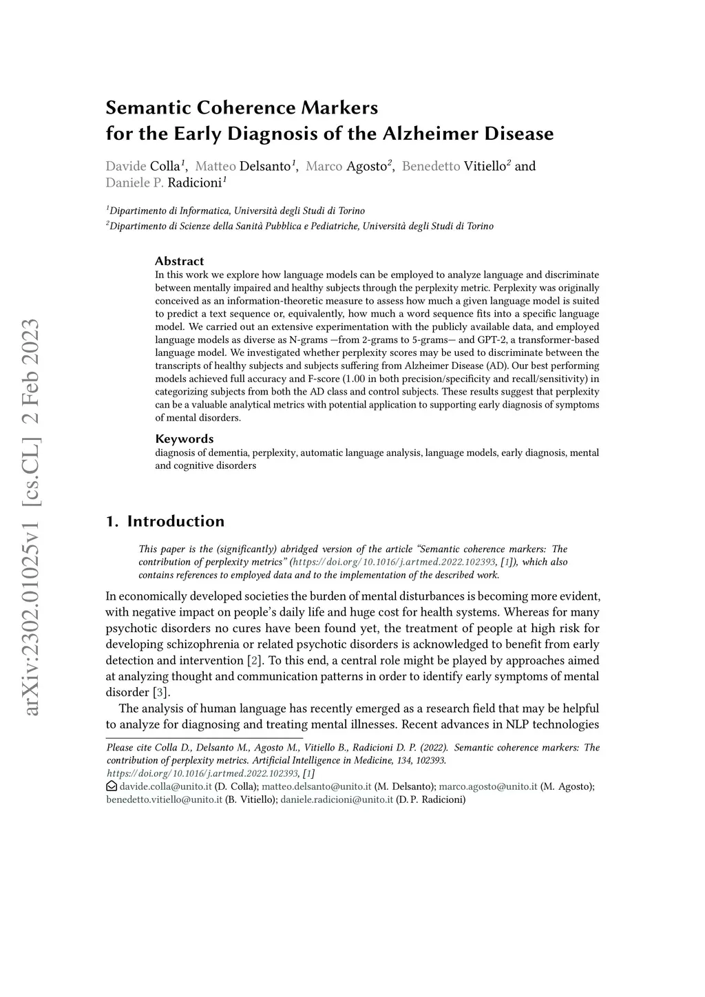 Semantic Coherence Markers for the Early Diagnosis of the Alzheimer