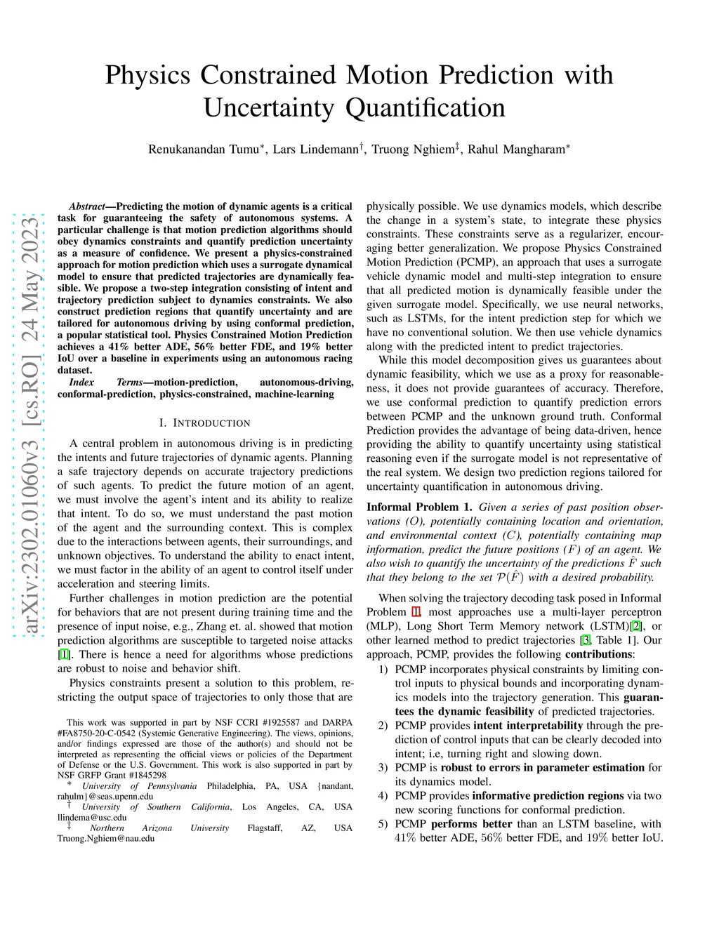Physics Constrained Motion Prediction with Uncertainty Quantification