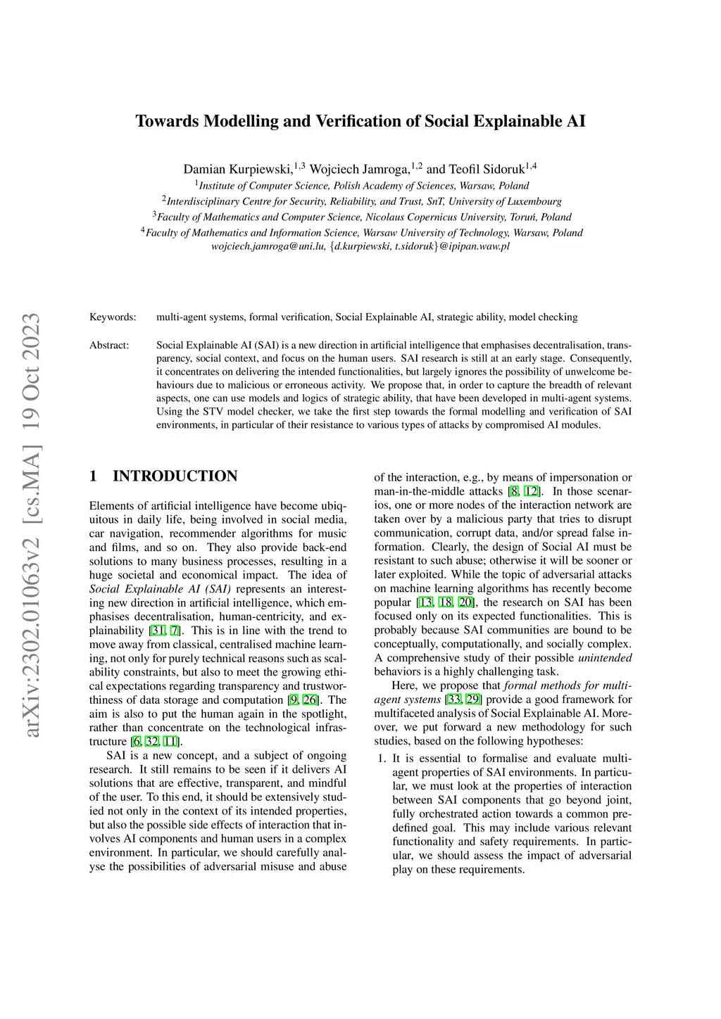 Social Explainable AI (SAI) is a new direction in artificial intelligence that emphasises decentralisation, transparency, social context, and focus on the human users. SAI research is still at an early stage. Consequently, it concentrates on delivering the intended functionalities, but largely ignores the possibility of unwelcome behaviours due to malicious or erroneous activity. We propose that, in order to capture the breadth of relevant aspects, one can use models and logics of strategic ability, that have been developed in multi-agent systems. Using the STV model checker, we take the first step towards the formal modelling and verification of SAI environments, in particular of their resistance to various types of attacks by compromised AI modules.