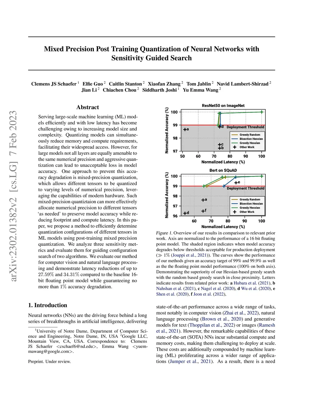 Serving large-scale machine learning (ML) models efficiently and with low latency has become challenging owing to increasing model size and complexity. Quantizing models can simultaneously reduce memory and compute requirements, facilitating their widespread access. However, for large models not all layers are equally amenable to the same numerical precision and aggressive quantization can lead to unacceptable loss in model accuracy. One approach to prevent this accuracy degradation is mixed-precision quantization, which allows different tensors to be quantized to varying levels of numerical precision, leveraging the capabilities of modern hardware. Such mixed-precision quantiztaion can more effectively allocate numerical precision to different tensors `as needed' to preserve model accuracy while reducing footprint and compute latency. In this paper, we propose a method to efficiently determine quantization configurations of different tensors in ML models using post-training mixed precision quantization. We analyze three sensitivity metrics and evaluate them for guiding configuration search of two algorithms. We evaluate our method for computer vision and natural language processing and demonstrate latency reductions of up to 27.59% and 34.31% compared to the baseline 16-bit floating point model while guaranteeing no more than 1% accuracy degradation.