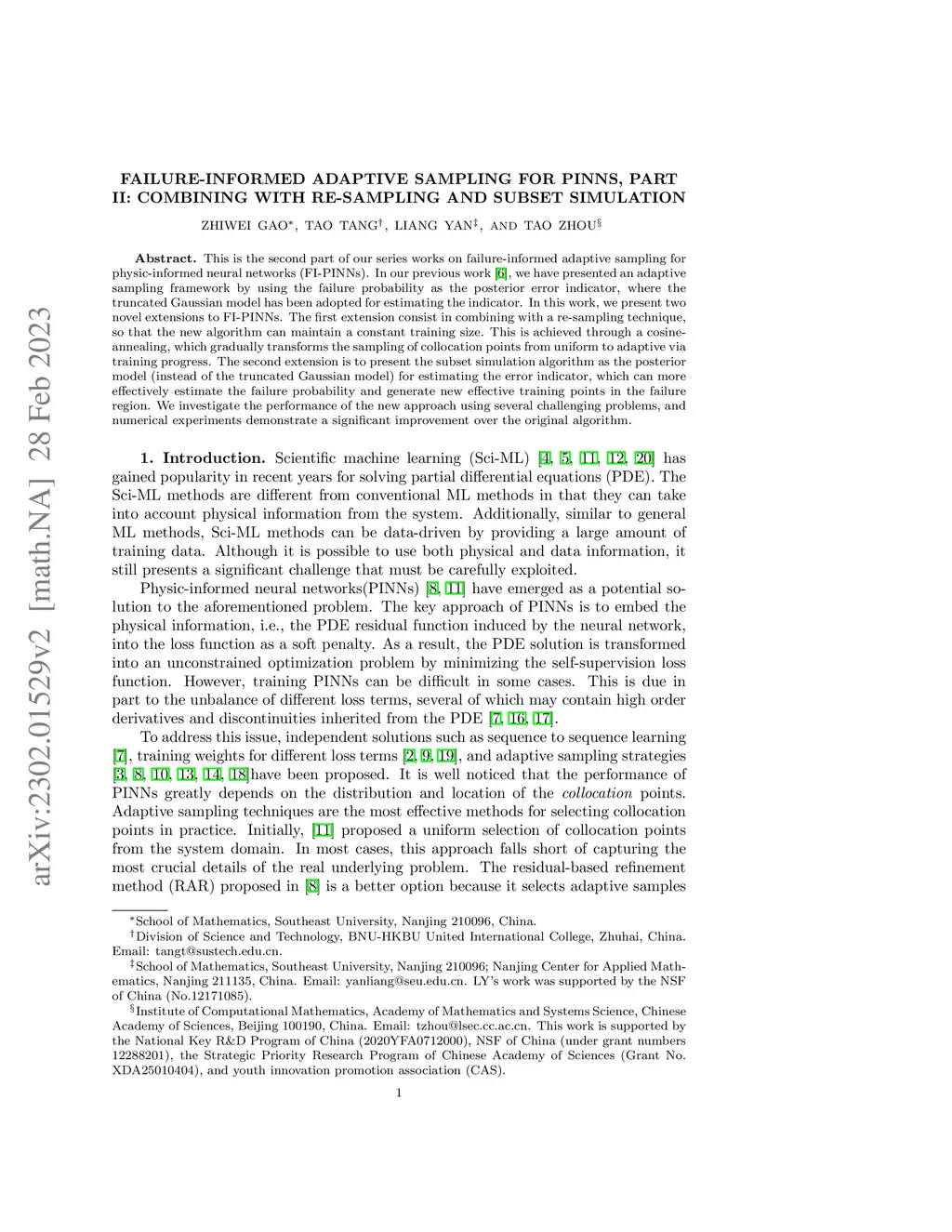 This is the second part of our series works on failure-informed adaptive sampling for physic-informed neural networks (FI-PINNs). In our previous work \cite{gao2022failure}, we have presented an adaptive sampling framework by using the failure probability as the posterior error indicator, where the truncated Gaussian model has been adopted for estimating the indicator. In this work, we present two novel extensions to FI-PINNs. The first extension consist in combining with a re-sampling technique, so that the new algorithm can maintain a constant training size. This is achieved through a cosine-annealing, which gradually transforms the sampling of collocation points from uniform to adaptive via training progress. The second extension is to present the subset simulation algorithm as the posterior model (instead of the truncated Gaussian model) for estimating the error indicator, which can more effectively estimate the failure probability and generate new effective training points in the failure region. We investigate the performance of the new approach using several challenging problems, and numerical experiments demonstrate a significant improvement over the original algorithm.