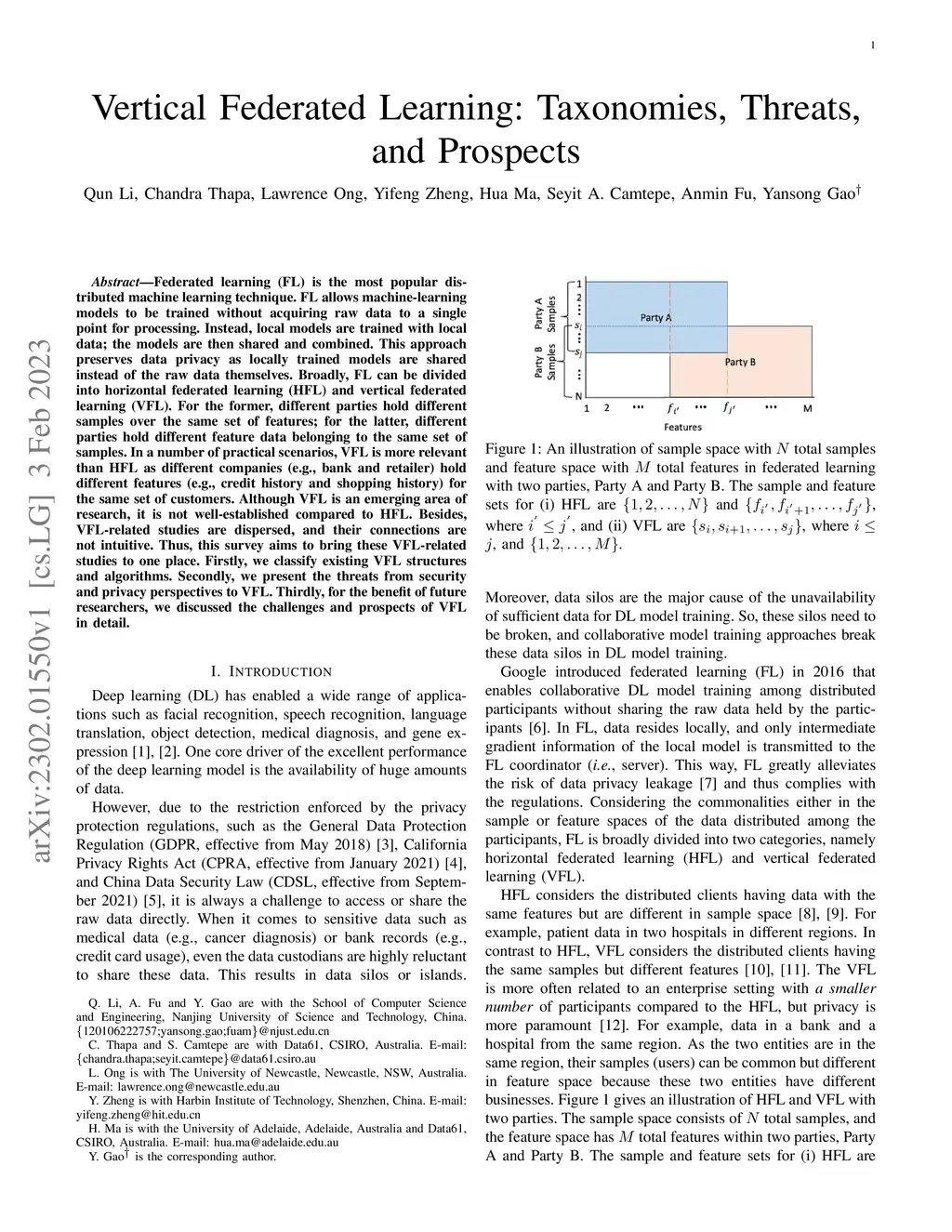 Vertical Federated Learning: Taxonomies, Threats, and Prospects