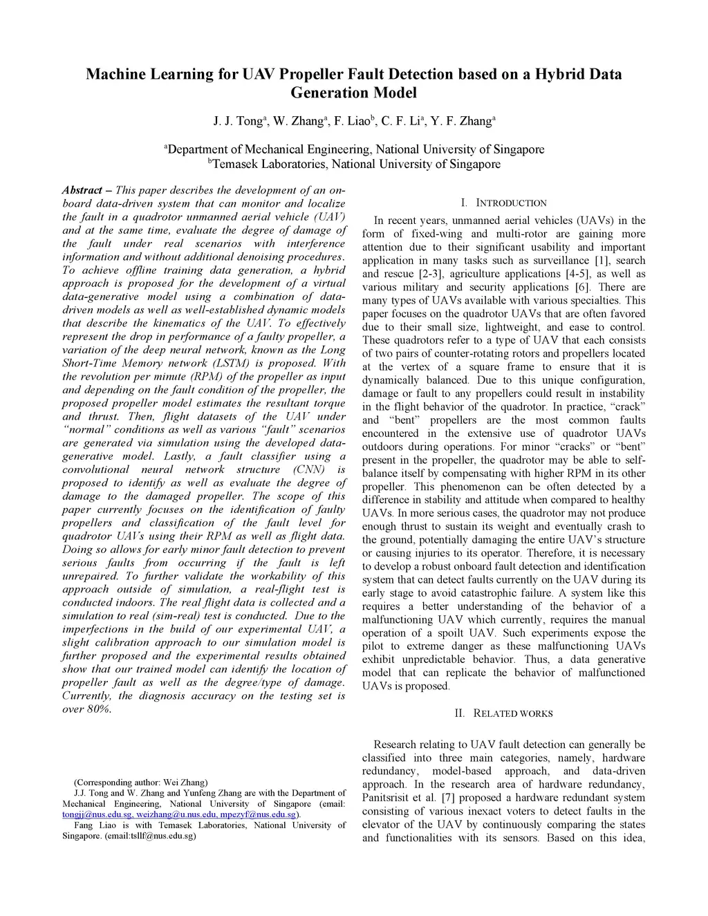 Machine Learning for UAV Propeller Fault Detection based on a Hybrid