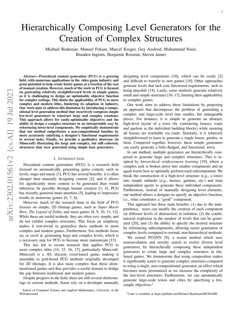 Hierarchically Composing Level Generators for the Creation of Complex