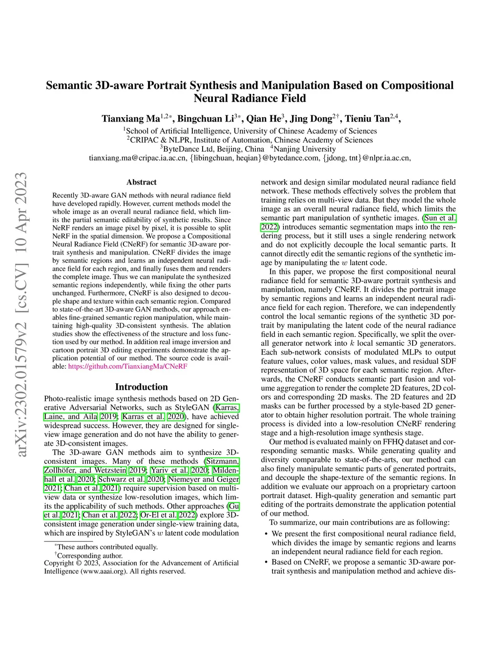 Semantic 3D-aware Portrait Synthesis and Manipulation Based on
