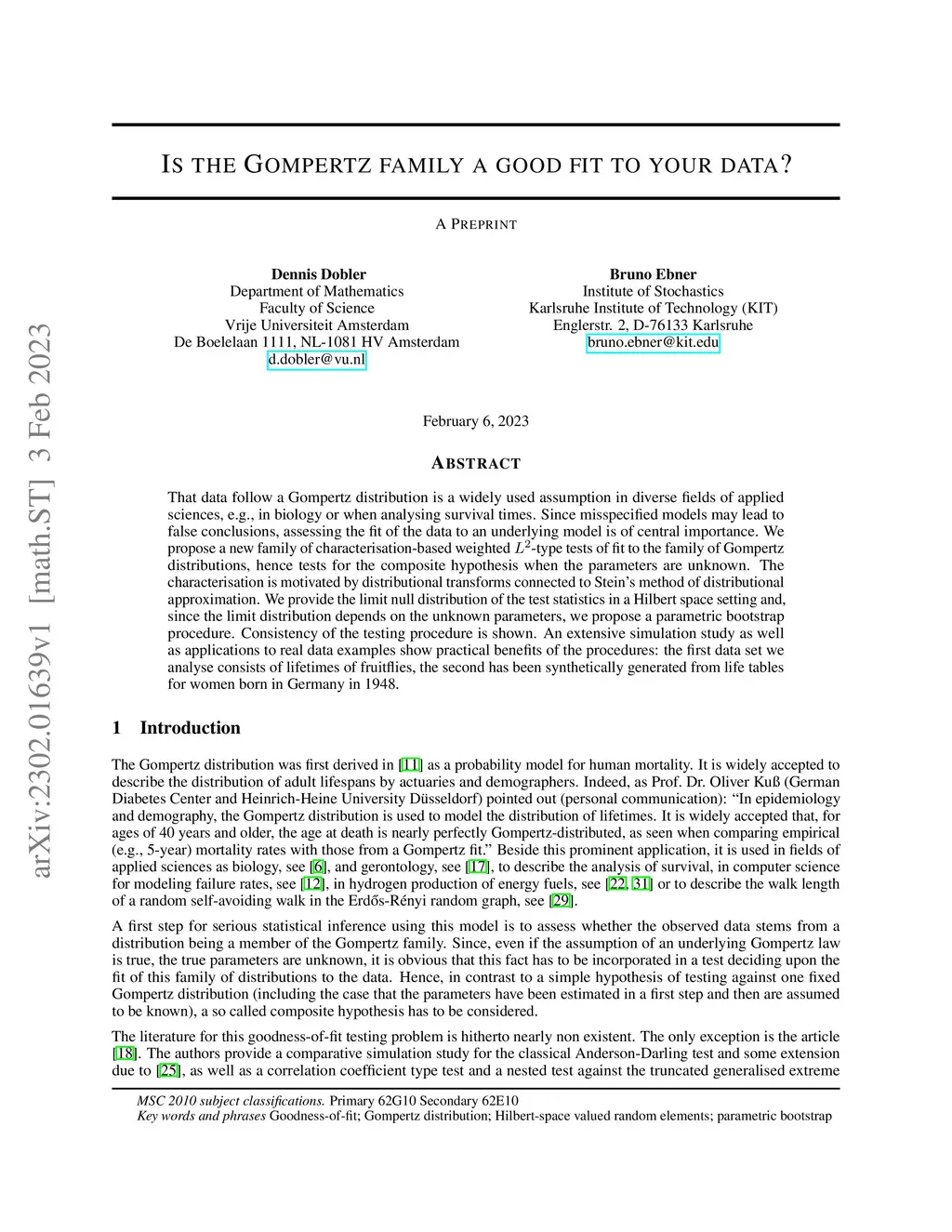 That data follow a Gompertz distribution is a widely used assumption in diverse fields of applied sciences, e.g., in biology or when analysing survival times. Since misspecified models may lead to false conclusions, assessing the fit of the data to an underlying model is of central importance. We propose a new family of characterisation-based weighted -type tests of fit to the family of Gompertz distributions, hence tests for the composite hypothesis when the parameters are unknown. The characterisation is motivated by distributional transforms connected to Stein's method of distributional approximation. We provide the limit null distribution of the test statistics in a Hilbert space setting and, since the limit distribution depends on the unknown parameters, we propose a parametric bootstrap procedure. Consistency of the testing procedure is shown. An extensive simulation study as well as applications to real data examples show practical benefits of the procedures: the first data set we analyse consists of lifetimes of fruitflies, the second has been synthetically generated from life tables for women born in Germany in 1948.