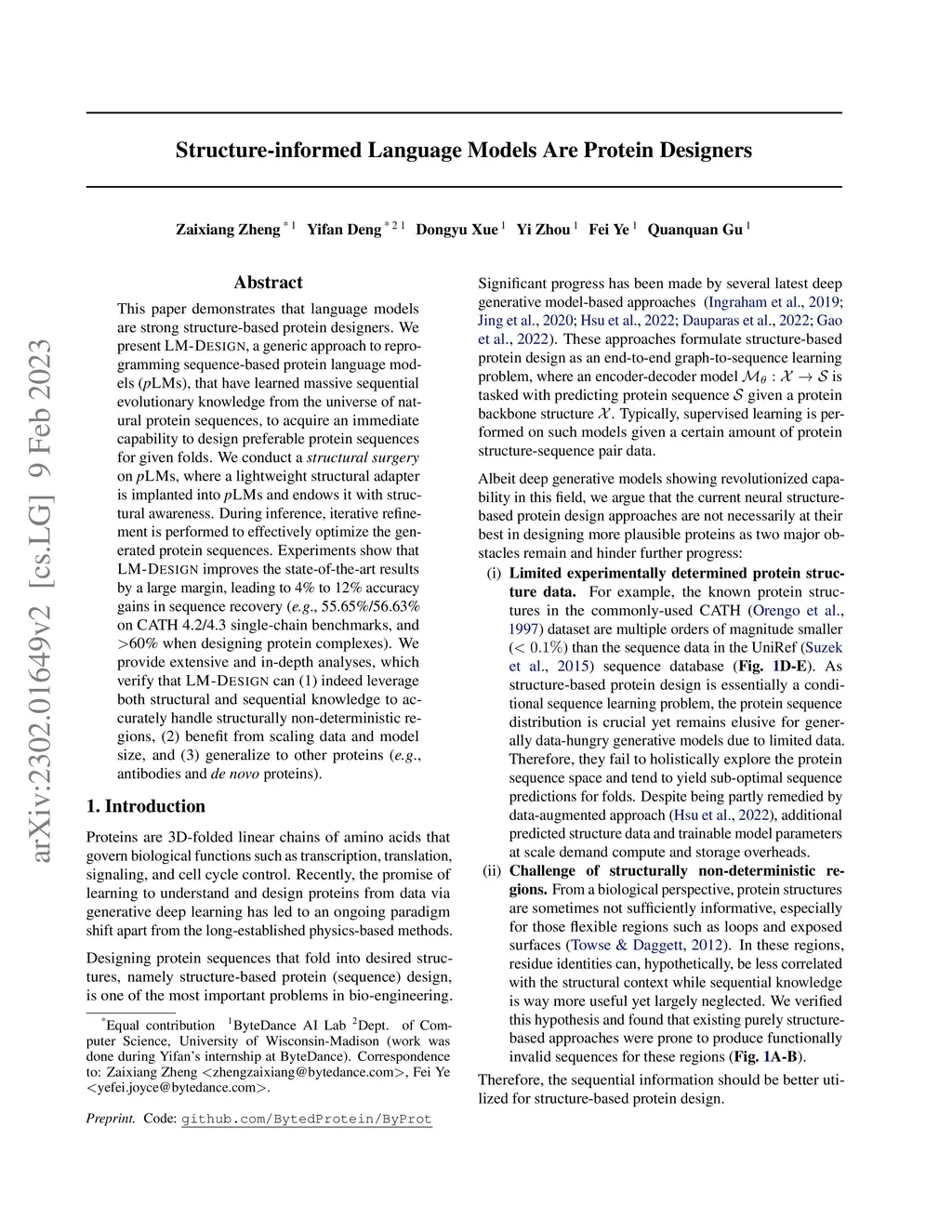 This paper demonstrates that language models are strong structure-based protein designers. We present LM-Design, a generic approach to reprogramming sequence-based protein language models (pLMs), that have learned massive sequential evolutionary knowledge from the universe of natural protein sequences, to acquire an immediate capability to design preferable protein sequences for given folds. We conduct a structural surgery on pLMs, where a lightweight structural adapter is implanted into pLMs and endows it with structural awareness. During inference, iterative refinement is performed to effectively optimize the generated protein sequences. Experiments show that LM-Design improves the state-of-the-art results by a large margin, leading to up to 4% to 12% accuracy gains in sequence recovery (e.g., 55.65%/56.63% on CATH 4.2/4.3 single-chain benchmarks, and >60% when designing protein complexes). We provide extensive and in-depth analyses, which verify that LM-Design can (1) indeed leverage both structural and sequential knowledge to accurately handle structurally non-deterministic regions, (2) benefit from scaling data and model size, and (3) generalize to other proteins (e.g., antibodies and de novo proteins)