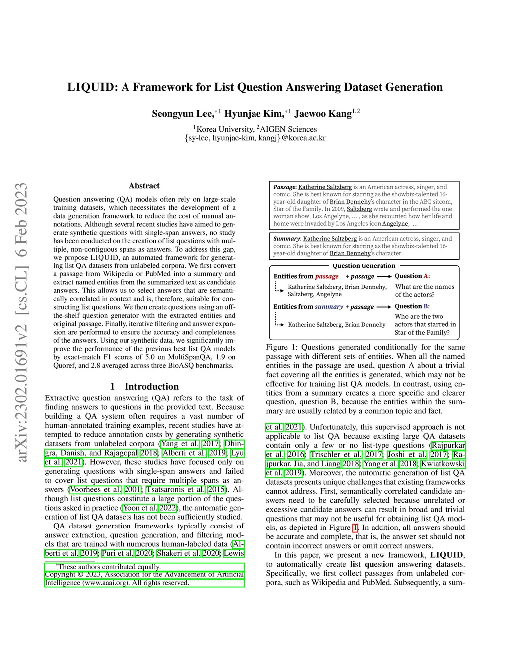 LIQUID: A Framework for List Question Answering Dataset Generation