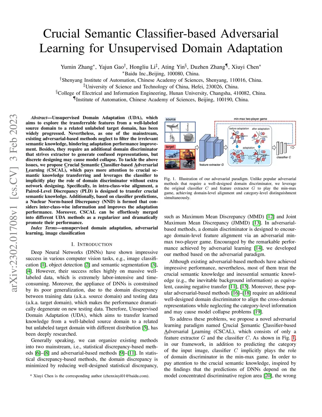 Crucial Semantic Classifier-based Adversarial Learning for Unsupervised