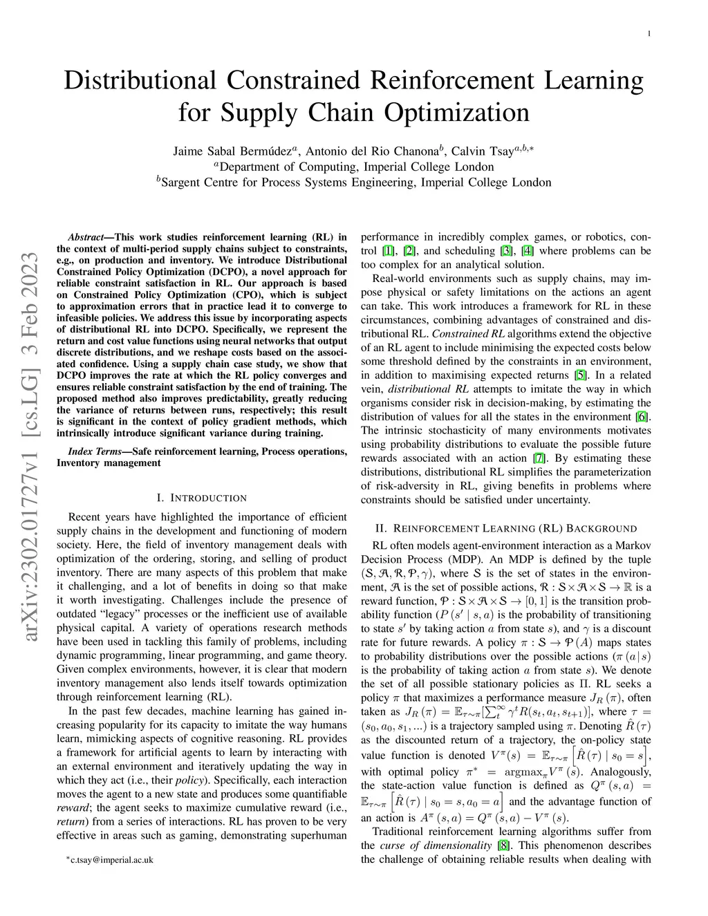 Distributional constrained reinforcement learning for supply chain