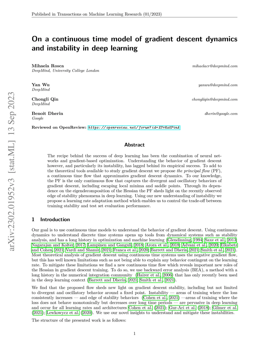 The recipe behind the success of deep learning has been the combination of neural networks and gradient-based optimization. Understanding the behavior of gradient descent however, and particularly its instability, has lagged behind its empirical success. To add to the theoretical tools available to study gradient descent we propose the principal flow (PF), a continuous time flow that approximates gradient descent dynamics. To our knowledge, the PF is the only continuous flow that captures the divergent and oscillatory behaviors of gradient descent, including escaping local minima and saddle points. Through its dependence on the eigendecomposition of the Hessian the PF sheds light on the recently observed edge of stability phenomena in deep learning. Using our new understanding of instability we propose a learning rate adaptation method which enables us to control the trade-off between training stability and test set evaluation performance.