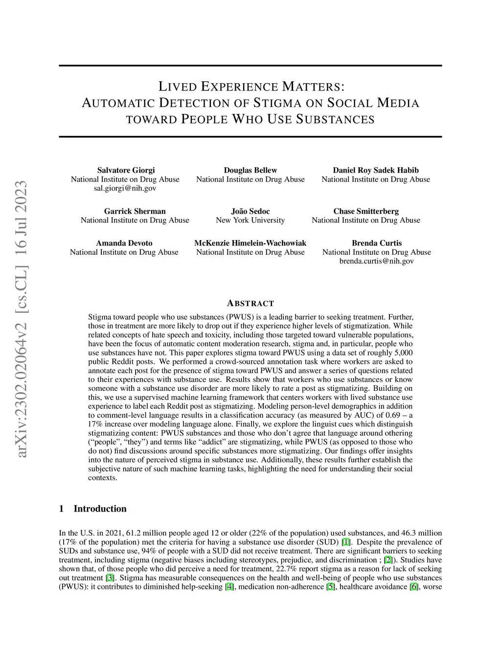 Lived Experience Matters: Automatic Detection of Stigma on Social Media