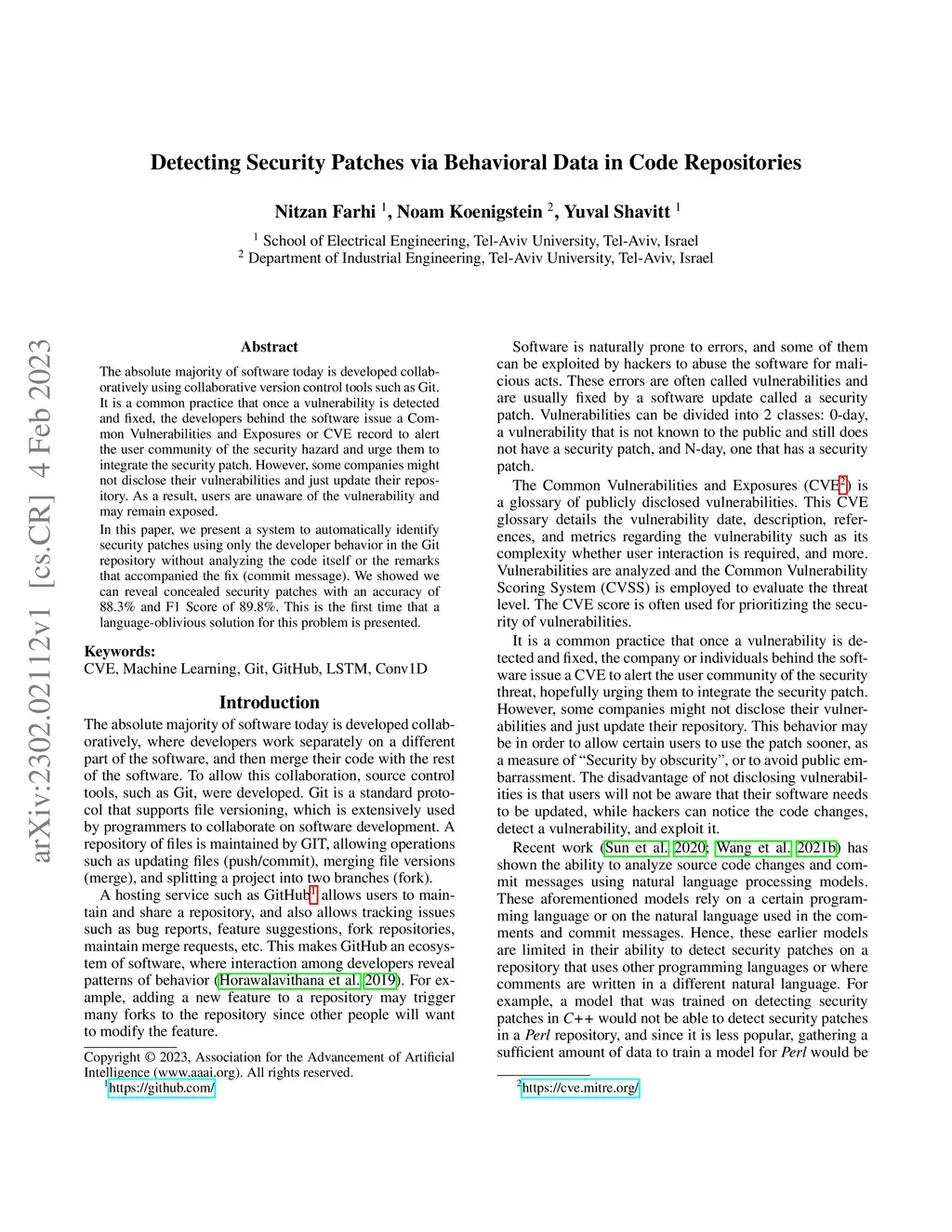 The absolute majority of software today is developed collaboratively using collaborative version control tools such as Git. It is a common practice that once a vulnerability is detected and fixed, the developers behind the software issue a Common Vulnerabilities and Exposures or CVE record to alert the user community of the security hazard and urge them to integrate the security patch. However, some companies might not disclose their vulnerabilities and just update their repository. As a result, users are unaware of the vulnerability and may remain exposed. In this paper, we present a system to automatically identify security patches using only the developer behavior in the Git repository without analyzing the code itself or the remarks that accompanied the fix (commit message). We showed we can reveal concealed security patches with an accuracy of 88.3% and F1 Score of 89.8%. This is the first time that a language-oblivious solution for this problem is presented.