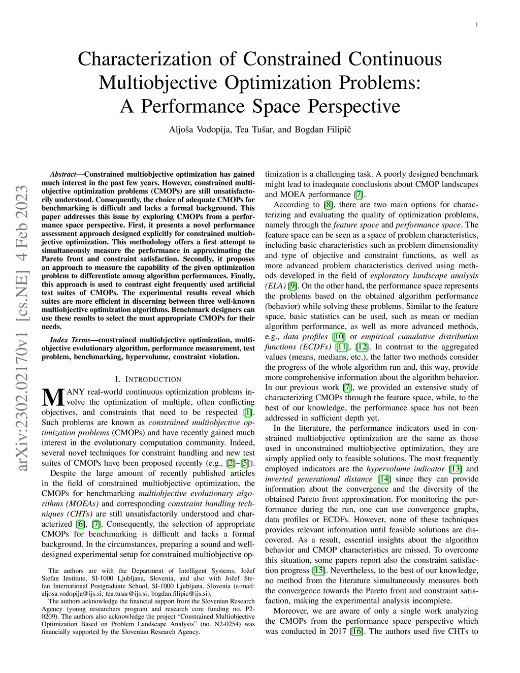 Characterization of Constrained Continuous Multiobjective Optimization