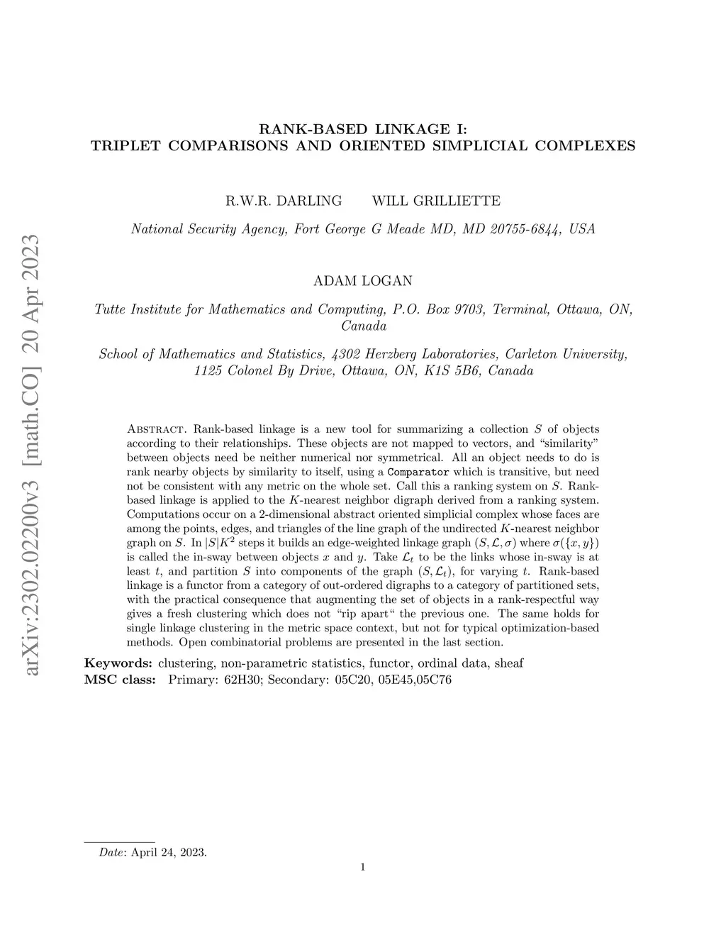 Rank-based linkage I: triplet comparisons and oriented simplicial
