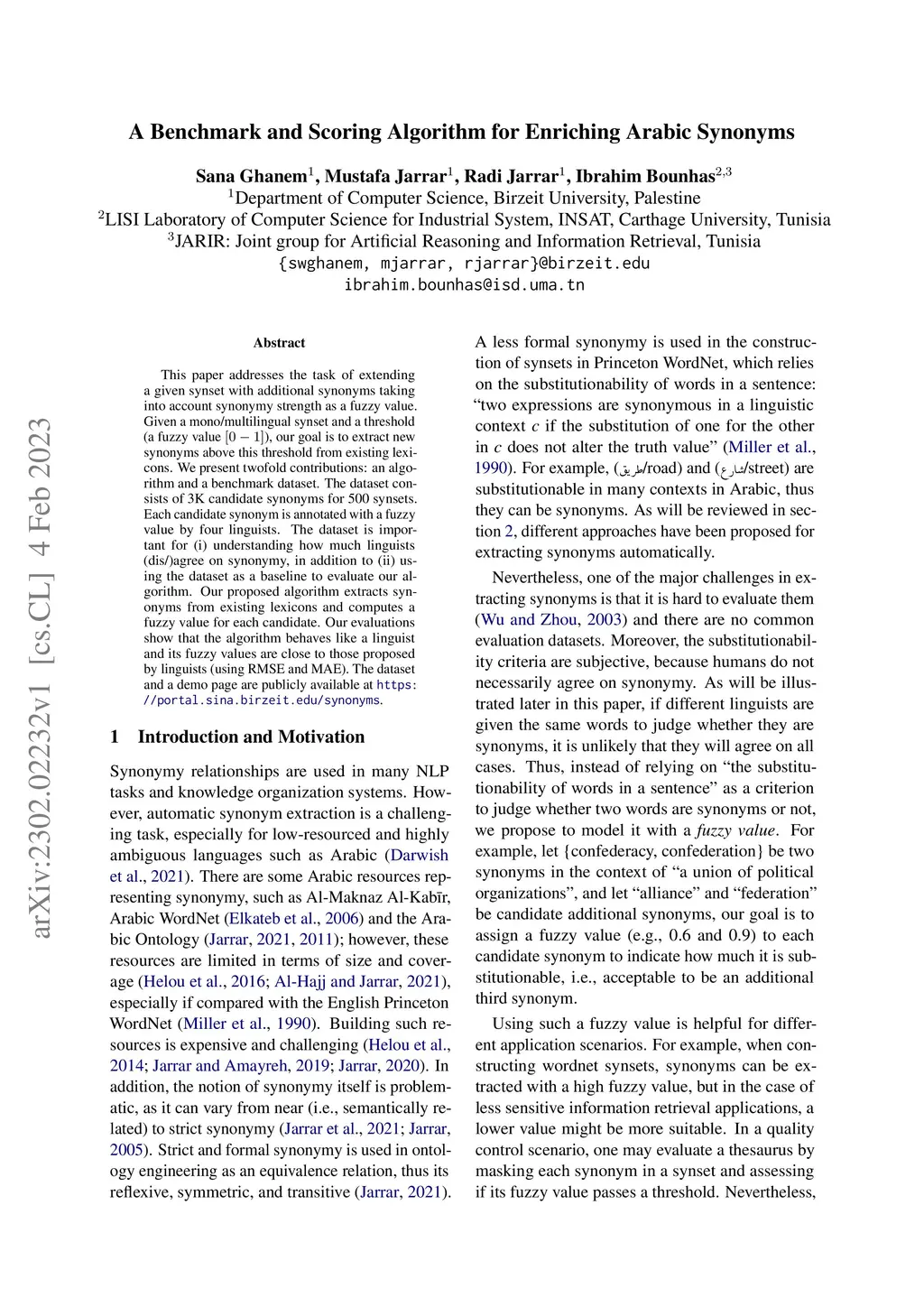 A Benchmark and Scoring Algorithm for Enriching Arabic Synonyms