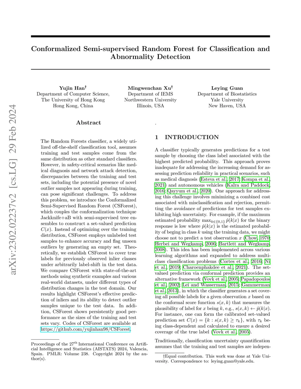Conformalized Semi-supervised Random Forest for Classification and