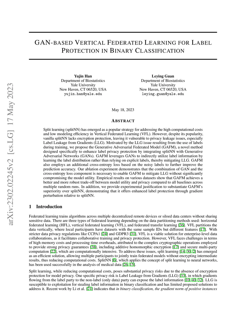 Split learning (splitNN) has emerged as a popular strategy for addressing the high computational costs and low modeling efficiency in Vertical Federated Learning (VFL). However, despite its popularity, vanilla splitNN lacks encryption protection, leaving it vulnerable to privacy leakage issues, especially Label Leakage from Gradients (LLG). Motivated by the LLG issue resulting from the use of labels during training, we propose the Generative Adversarial Federated Model (GAFM), a novel method designed specifically to enhance label privacy protection by integrating splitNN with Generative Adversarial Networks (GANs). GAFM leverages GANs to indirectly utilize label information by learning the label distribution rather than relying on explicit labels, thereby mitigating LLG. GAFM also employs an additional cross-entropy loss based on the noisy labels to further improve the prediction accuracy. Our ablation experiment demonstrates that the combination of GAN and the cross-entropy loss component is necessary to enable GAFM to mitigate LLG without significantly compromising the model utility. Empirical results on various datasets show that GAFM achieves a better and more robust trade-off between model utility and privacy compared to all baselines across multiple random runs. In addition, we provide experimental justification to substantiate GAFM's superiority over splitNN, demonstrating that it offers enhanced label protection through gradient perturbation relative to splitNN.