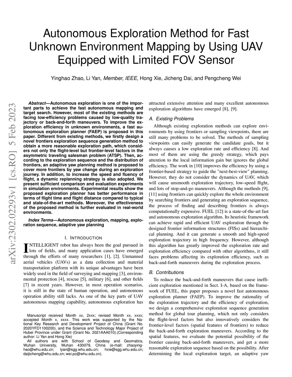 Autonomous Exploration Method for Fast Unknown Environment Mapping by