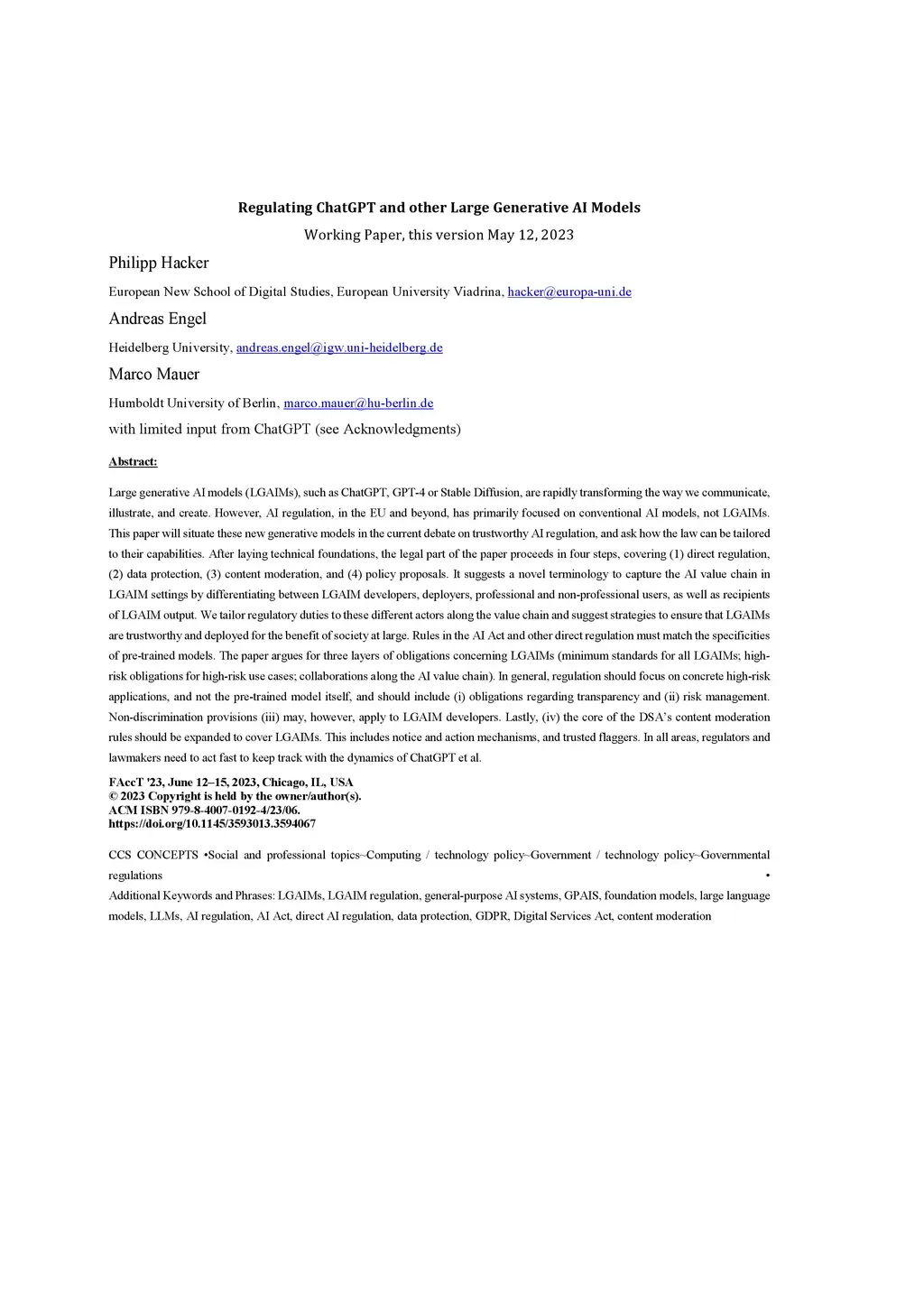 Large generative AI models (LGAIMs), such as ChatGPT, GPT-4 or Stable Diffusion, are rapidly transforming the way we communicate, illustrate, and create. However, AI regulation, in the EU and beyond, has primarily focused on conventional AI models, not LGAIMs. This paper will situate these new generative models in the current debate on trustworthy AI regulation, and ask how the law can be tailored to their capabilities. After laying technical foundations, the legal part of the paper proceeds in four steps, covering (1) direct regulation, (2) data protection, (3) content moderation, and (4) policy proposals. It suggests a novel terminology to capture the AI value chain in LGAIM settings by differentiating between LGAIM developers, deployers, professional and non-professional users, as well as recipients of LGAIM output. We tailor regulatory duties to these different actors along the value chain and suggest strategies to ensure that LGAIMs are trustworthy and deployed for the benefit of society at large. Rules in the AI Act and other direct regulation must match the specificities of pre-trained models. The paper argues for three layers of obligations concerning LGAIMs (minimum standards for all LGAIMs; high-risk obligations for high-risk use cases; collaborations along the AI value chain). In general, regulation should focus on concrete high-risk applications, and not the pre-trained model itself, and should include (i) obligations regarding transparency and (ii) risk management. Non-discrimination provisions (iii) may, however, apply to LGAIM developers. Lastly, (iv) the core of the DSA content moderation rules should be expanded to cover LGAIMs. This includes notice and action mechanisms, and trusted flaggers. In all areas, regulators and lawmakers need to act fast to keep track with the dynamics of ChatGPT et al.