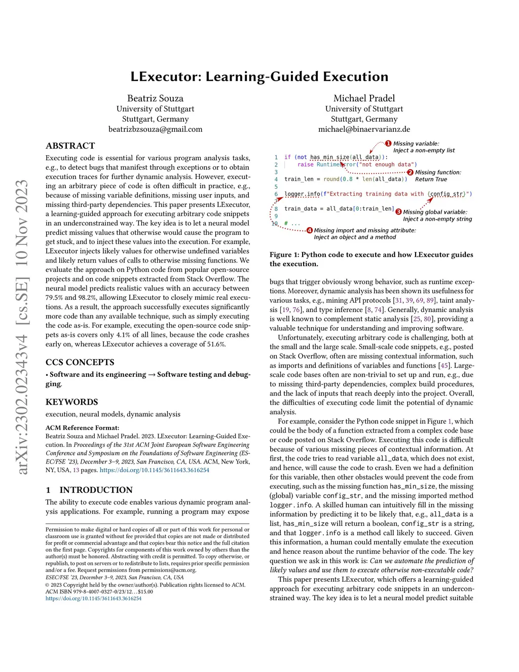 Executing code is essential for various program analysis tasks, e.g., to detect bugs that manifest through exceptions or to obtain execution traces for further dynamic analysis. However, executing an arbitrary piece of code is often difficult in practice, e.g., because of missing variable definitions, missing user inputs, and missing third-party dependencies. This paper presents LExecutor, a learning-guided approach for executing arbitrary code snippets in an underconstrained way. The key idea is to let a neural model predict missing values that otherwise would cause the program to get stuck, and to inject these values into the execution. For example, LExecutor injects likely values for otherwise undefined variables and likely return values of calls to otherwise missing functions. We evaluate the approach on Python code from popular open-source projects and on code snippets extracted from Stack Overflow. The neural model predicts realistic values with an accuracy between 79.5% and 98.2%, allowing LExecutor to closely mimic real executions. As a result, the approach successfully executes significantly more code than any available technique, such as simply executing the code as-is. For example, executing the open-source code snippets as-is covers only 4.1% of all lines, because the code crashes early on, whereas LExecutor achieves a coverage of 51.6%.