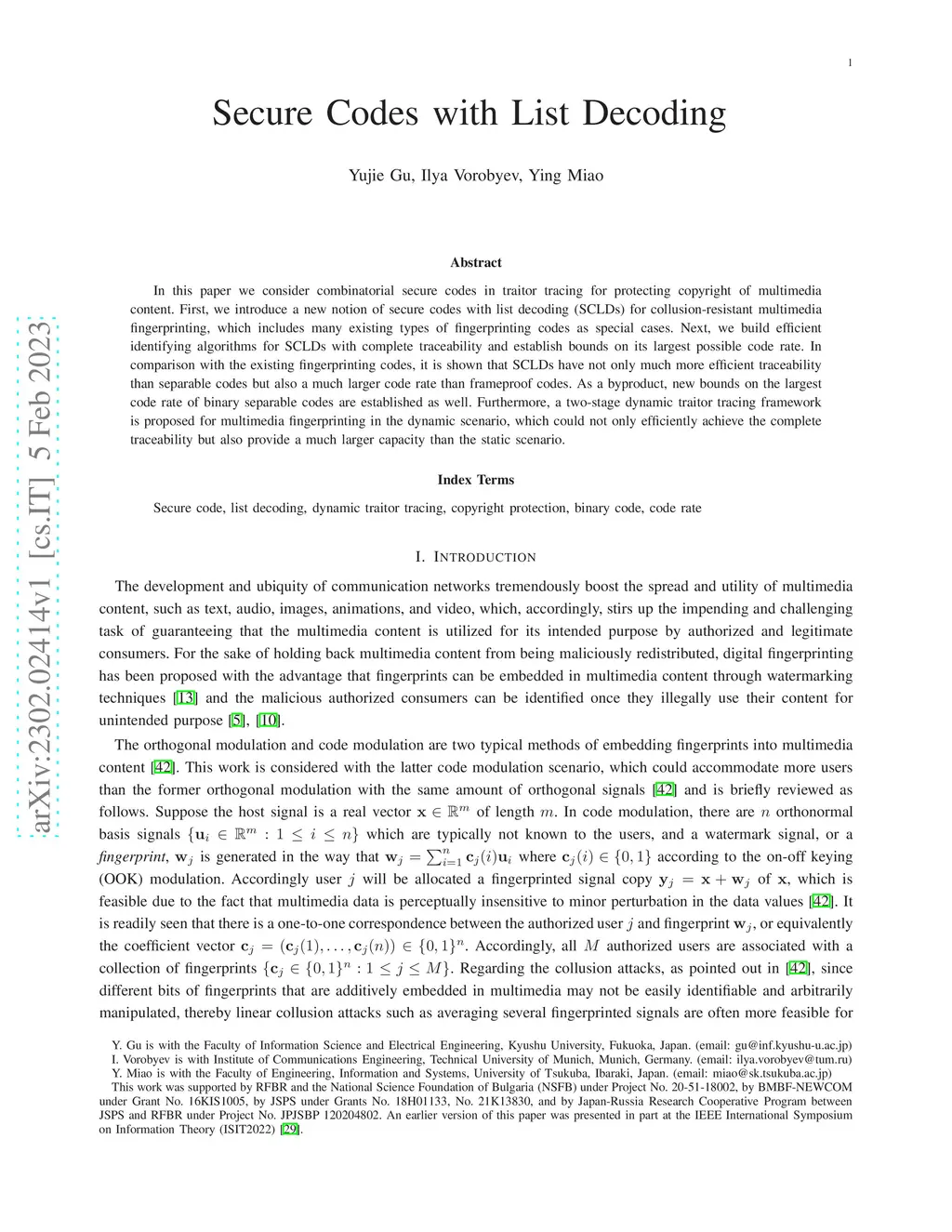 In this paper we consider combinatorial secure codes in traitor tracing for protecting copyright of multimedia content. First, we introduce a new notion of secure codes with list decoding (SCLDs) for collusion-resistant multimedia fingerprinting, which includes many existing types of fingerprinting codes as special cases. Next, we build efficient identifying algorithms for SCLDs with complete traceability and establish bounds on its largest possible code rate. In comparison with the existing fingerprinting codes, it is shown that SCLDs have not only much more efficient traceability than separable codes but also a much larger code rate than frameproof codes. As a byproduct, new bounds on the largest code rate of binary separable codes are established as well. Furthermore, a two-stage dynamic traitor tracing framework is proposed for multimedia fingerprinting in the dynamic scenario, which could not only efficiently achieve the complete traceability but also provide a much larger capacity than the static scenario.