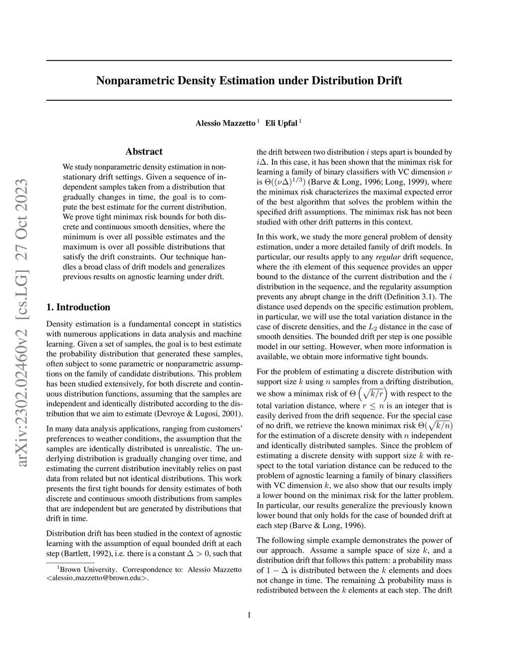 We study nonparametric density estimation in non-stationary drift settings. Given a sequence of independent samples taken from a distribution that gradually changes in time, the goal is to compute the best estimate for the current distribution. We prove tight minimax risk bounds for both discrete and continuous smooth densities, where the minimum is over all possible estimates and the maximum is over all possible distributions that satisfy the drift constraints. Our technique handles a broad class of drift models, and generalizes previous results on agnostic learning under drift.