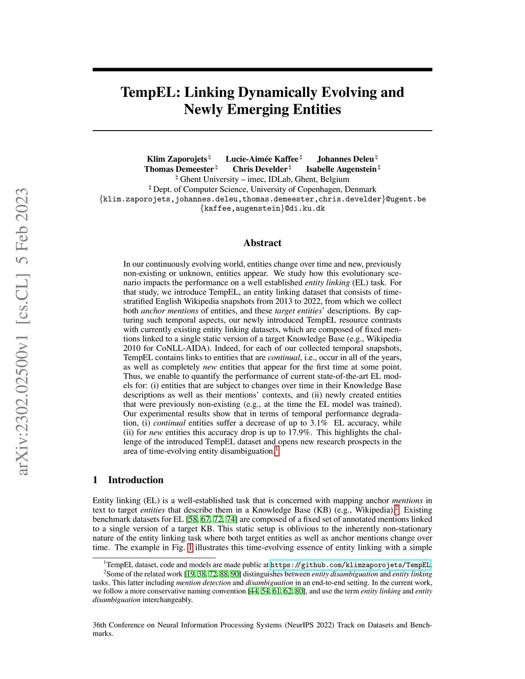 TempEL: Linking Dynamically Evolving and Newly Emerging Entities