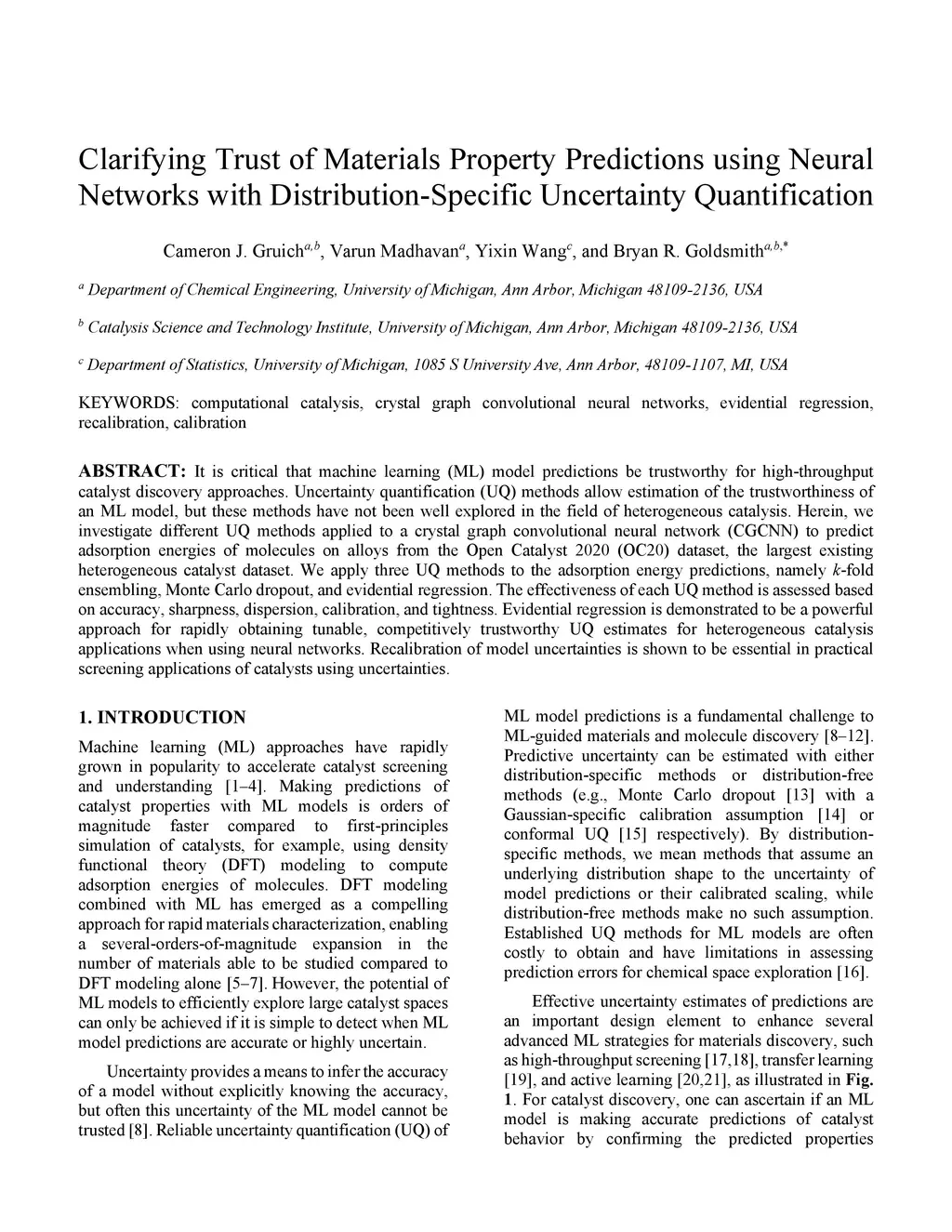 It is critical that machine learning (ML) model predictions be trustworthy for high-throughput catalyst discovery approaches. Uncertainty quantification (UQ) methods allow estimation of the trustworthiness of an ML model, but these methods have not been well explored in the field of heterogeneous catalysis. Herein, we investigate different UQ methods applied to a crystal graph convolutional neural network (CGCNN) to predict adsorption energies of molecules on alloys from the Open Catalyst 2020 (OC20) dataset, the largest existing heterogeneous catalyst dataset. We apply three UQ methods to the adsorption energy predictions, namely k-fold ensembling, Monte Carlo dropout, and evidential regression. The effectiveness of each UQ method is assessed based on accuracy, sharpness, dispersion, calibration, and tightness. Evidential regression is demonstrated to be a powerful approach for rapidly obtaining tunable, competitively trustworthy UQ estimates for heterogeneous catalysis applications when using neural networks. Recalibration of model uncertainties is shown to be essential in practical screening applications of catalysts using uncertainties.