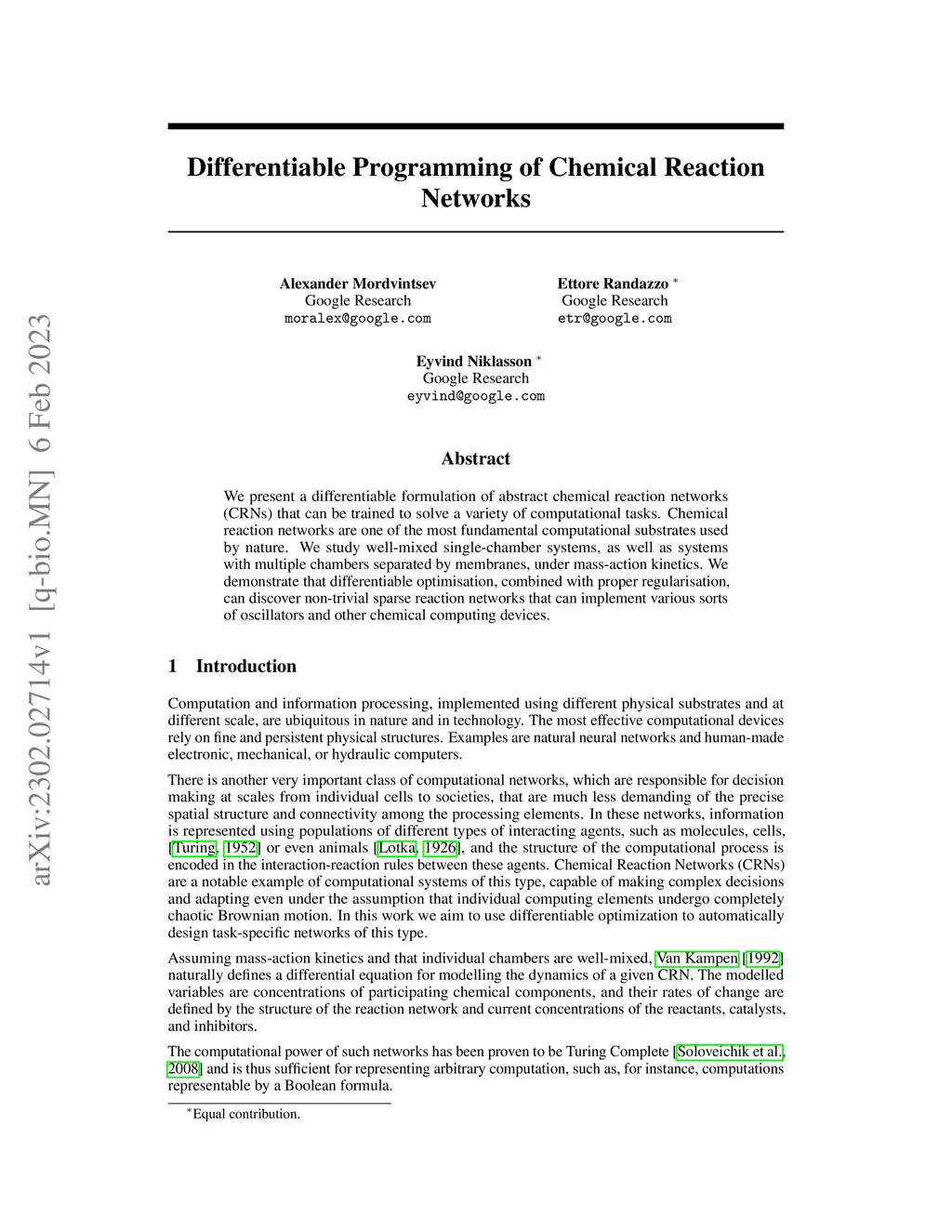 We present a differentiable formulation of abstract chemical reaction networks (CRNs) that can be trained to solve a variety of computational tasks. Chemical reaction networks are one of the most fundamental computational substrates used by nature. We study well-mixed single-chamber systems, as well as systems with multiple chambers separated by membranes, under mass-action kinetics. We demonstrate that differentiable optimisation, combined with proper regularisation, can discover non-trivial sparse reaction networks that can implement various sorts of oscillators and other chemical computing devices.