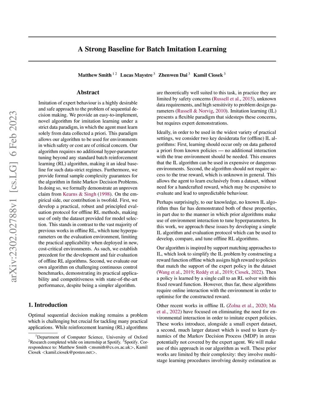Imitation of expert behaviour is a highly desirable and safe approach to the problem of sequential decision making. We provide an easy-to-implement, novel algorithm for imitation learning under a strict data paradigm, in which the agent must learn solely from data collected a priori. This paradigm allows our algorithm to be used for environments in which safety or cost are of critical concern. Our algorithm requires no additional hyper-parameter tuning beyond any standard batch reinforcement learning (RL) algorithm, making it an ideal baseline for such data-strict regimes. Furthermore, we provide formal sample complexity guarantees for the algorithm in finite Markov Decision Problems. In doing so, we formally demonstrate an unproven claim from Kearns & Singh (1998). On the empirical side, our contribution is twofold. First, we develop a practical, robust and principled evaluation protocol for offline RL methods, making use of only the dataset provided for model selection. This stands in contrast to the vast majority of previous works in offline RL, which tune hyperparameters on the evaluation environment, limiting the practical applicability when deployed in new, cost-critical environments. As such, we establish precedent for the development and fair evaluation of offline RL algorithms. Second, we evaluate our own algorithm on challenging continuous control benchmarks, demonstrating its practical applicability and competitiveness with state-of-the-art performance, despite being a simpler algorithm.