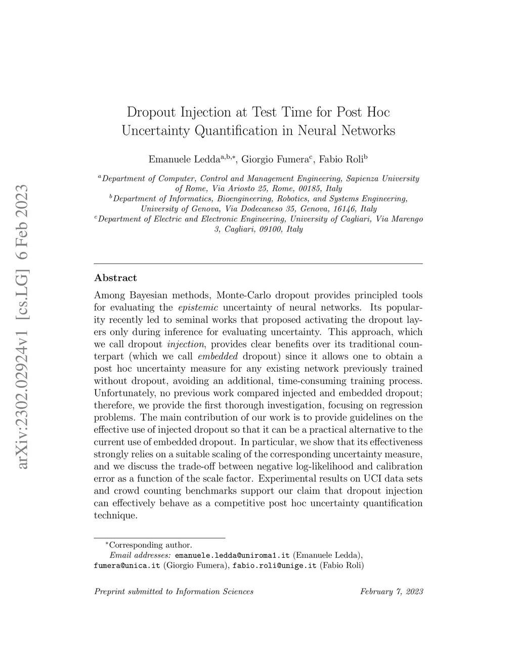 Among Bayesian methods, Monte-Carlo dropout provides principled tools for evaluating the epistemic uncertainty of neural networks. Its popularity recently led to seminal works that proposed activating the dropout layers only during inference for evaluating uncertainty. This approach, which we call dropout injection, provides clear benefits over its traditional counterpart (which we call embedded dropout) since it allows one to obtain a post hoc uncertainty measure for any existing network previously trained without dropout, avoiding an additional, time-consuming training process. Unfortunately, no previous work compared injected and embedded dropout; therefore, we provide the first thorough investigation, focusing on regression problems. The main contribution of our work is to provide guidelines on the effective use of injected dropout so that it can be a practical alternative to the current use of embedded dropout. In particular, we show that its effectiveness strongly relies on a suitable scaling of the corresponding uncertainty measure, and we discuss the trade-off between negative log-likelihood and calibration error as a function of the scale factor. Experimental results on UCI data sets and crowd counting benchmarks support our claim that dropout injection can effectively behave as a competitive post hoc uncertainty quantification technique.