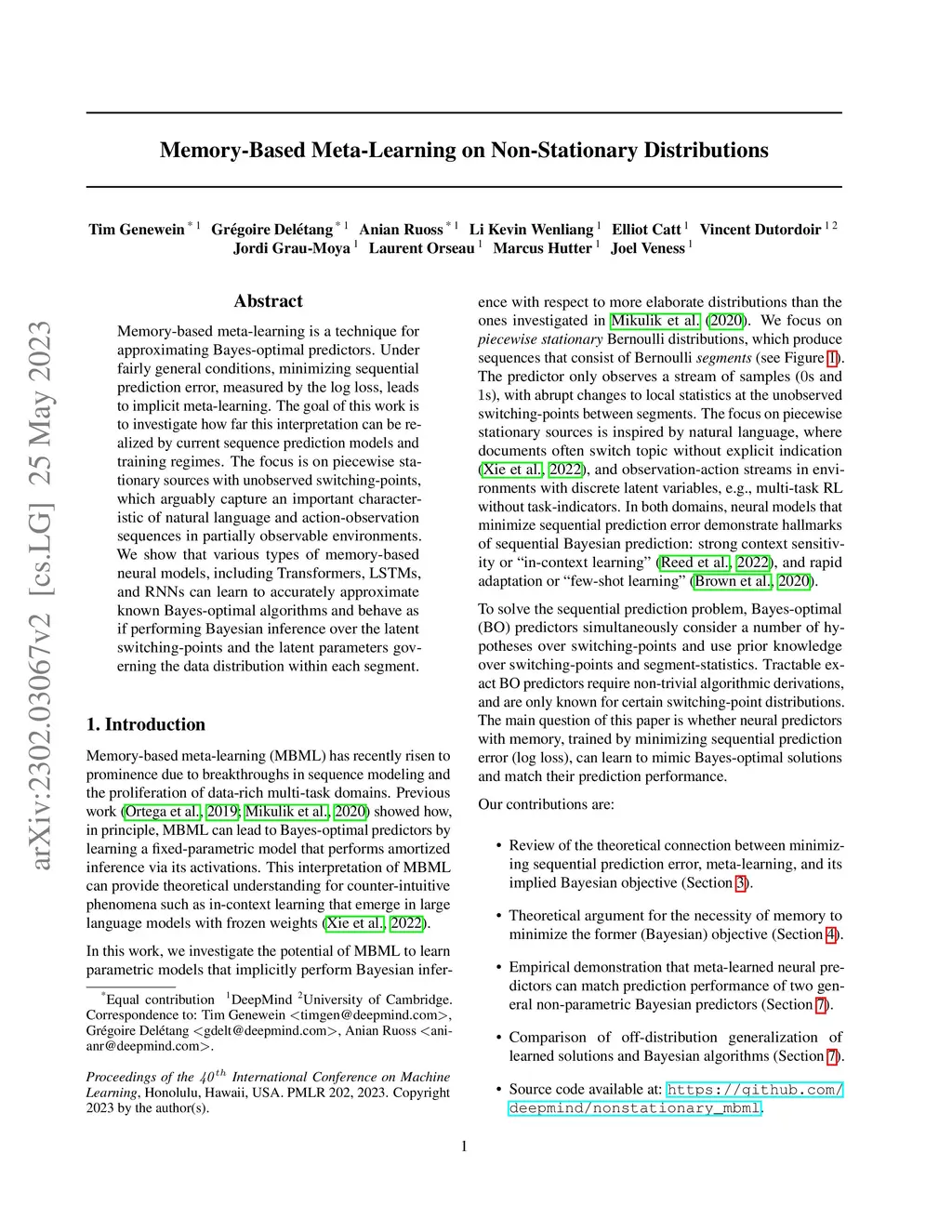Memory-Based Meta-Learning on Non-Stationary Distributions