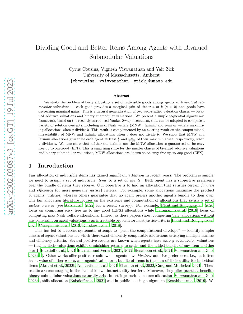 Dividing Good and Better Items Among Agents with Bivalued Submodular