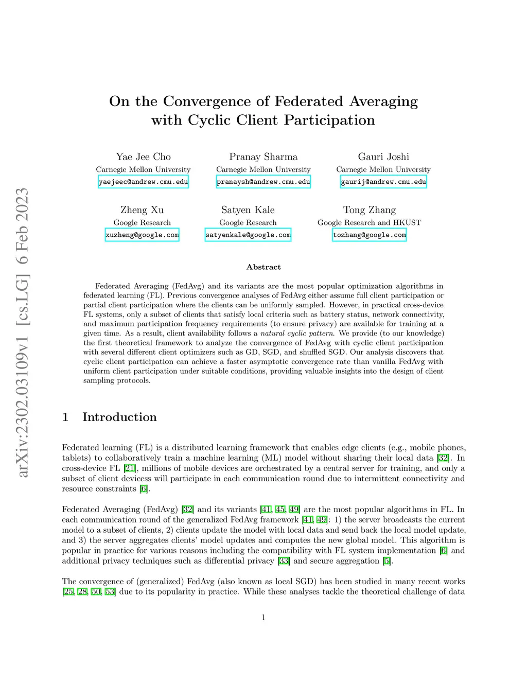On the Convergence of Federated Averaging with Cyclic Client