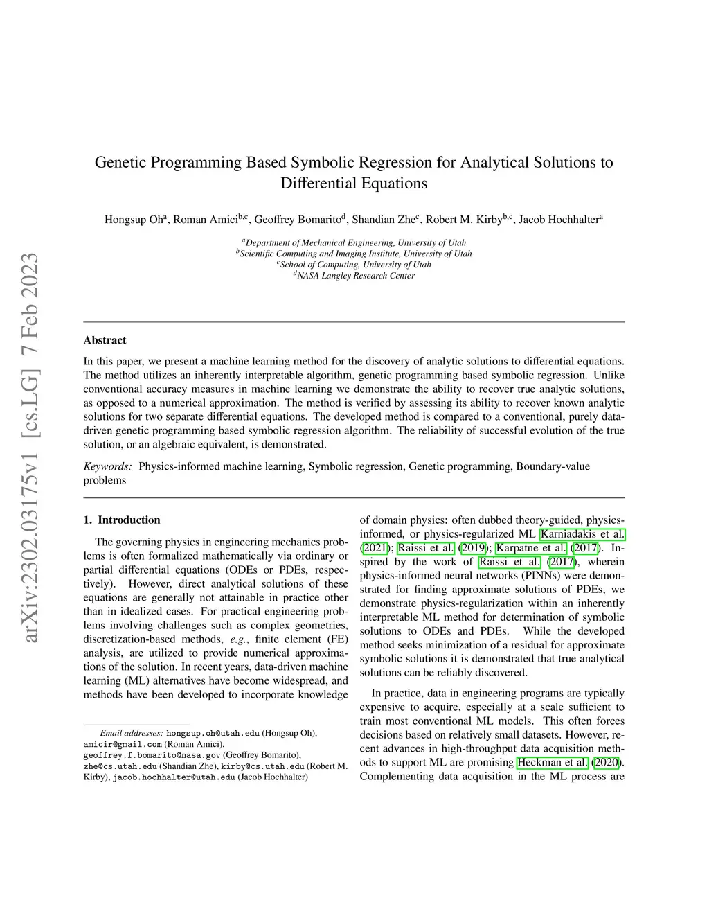 In this paper, we present a machine learning method for the discovery of analytic solutions to differential equations. The method utilizes an inherently interpretable algorithm, genetic programming based symbolic regression. Unlike conventional accuracy measures in machine learning we demonstrate the ability to recover true analytic solutions, as opposed to a numerical approximation. The method is verified by assessing its ability to recover known analytic solutions for two separate differential equations. The developed method is compared to a conventional, purely data-driven genetic programming based symbolic regression algorithm. The reliability of successful evolution of the true solution, or an algebraic equivalent, is demonstrated.