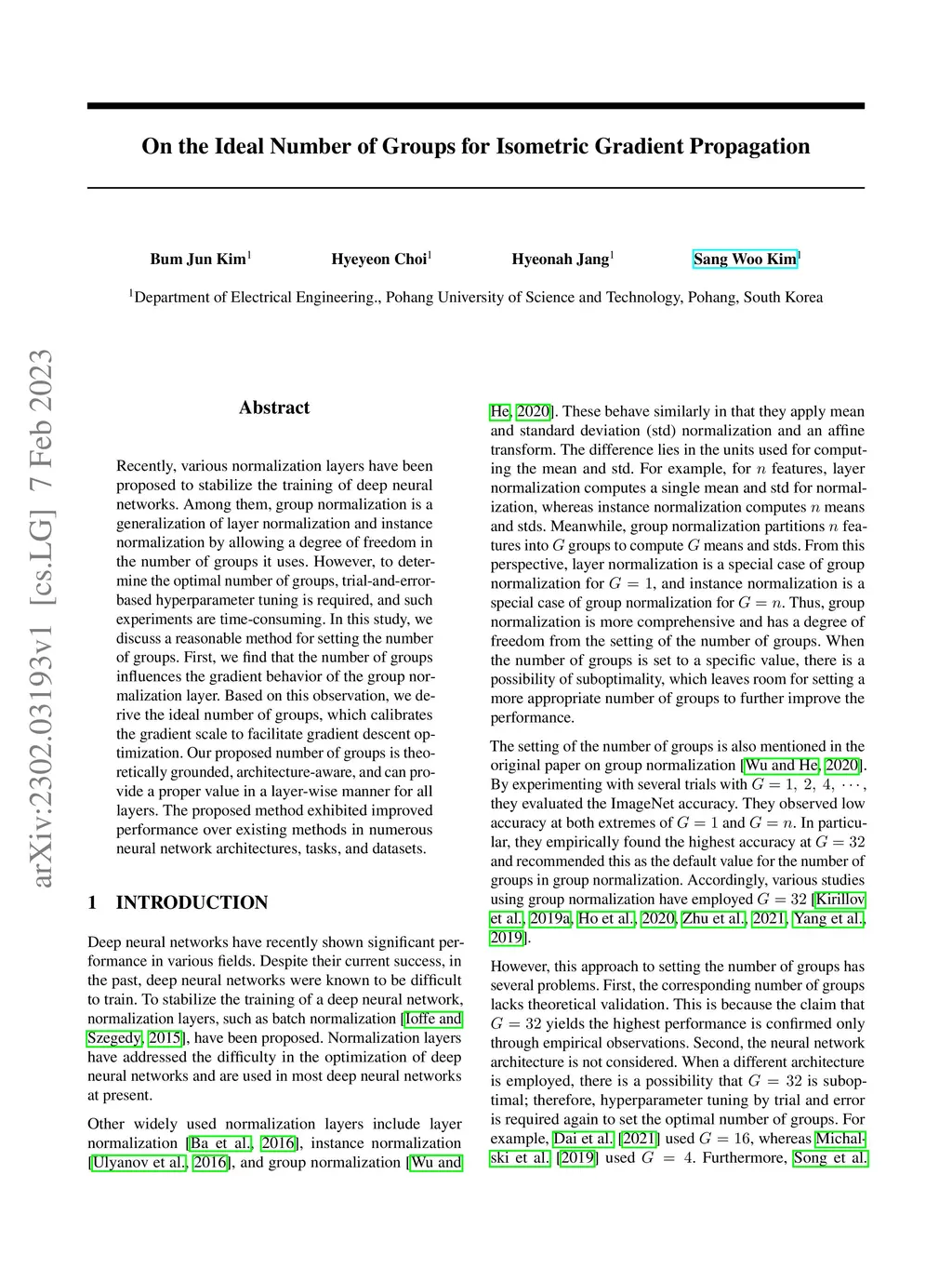 On the Ideal Number of Groups for Isometric Gradient Propagation