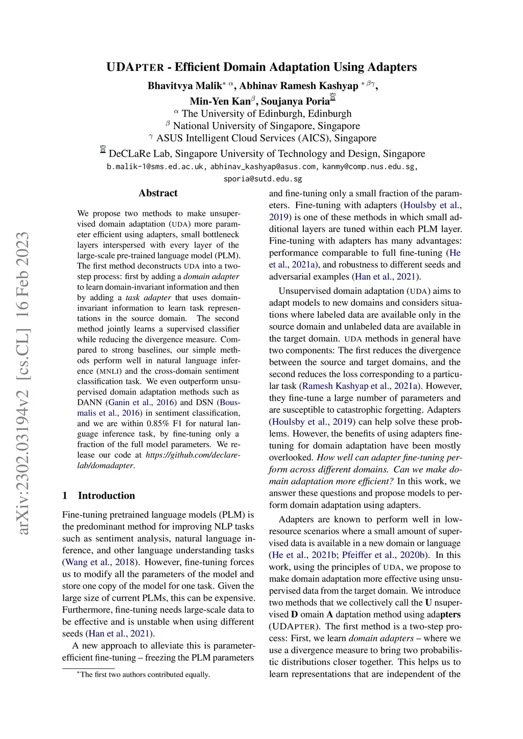 UDApter -- Efficient Domain Adaptation Using Adapters