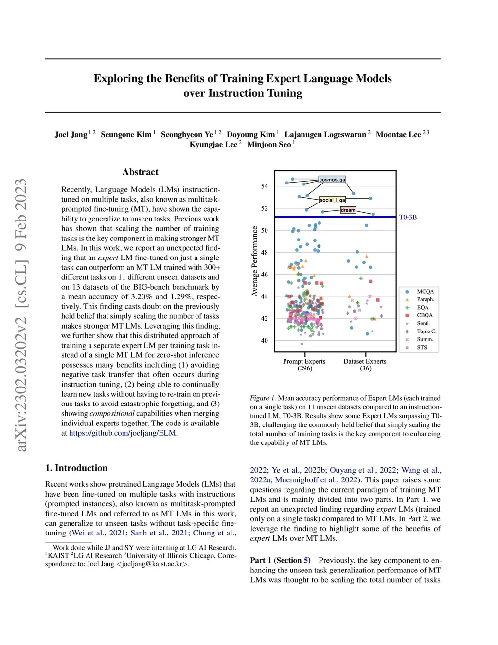 Recently, Language Models (LMs) instruction-tuned on multiple tasks, also known as multitask-prompted fine-tuning (MT), have shown the capability to generalize to unseen tasks. Previous work has shown that scaling the number of training tasks is the key component in making stronger MT LMs. In this work, we report an unexpected finding that an expert LM fine-tuned on just a single task can outperform an MT LM trained with 300+ different tasks on 11 different unseen datasets and on 13 datasets of the BIG-bench benchmark by a mean accuracy of 3.20% and 1.29%, respectively. This finding casts doubt on the previously held belief that simply scaling the number of tasks makes stronger MT LMs. Leveraging this finding, we further show that this distributed approach of training a separate expert LM per training task instead of a single MT LM for zero-shot inference possesses many benefits including (1) avoiding negative task transfer that often occurs during instruction tuning, (2) being able to continually learn new tasks without having to re-train on previous tasks to avoid catastrophic forgetting, and (3) showing compositional capabilities when merging individual experts together. The code is available at https://github.com/joeljang/ELM.
