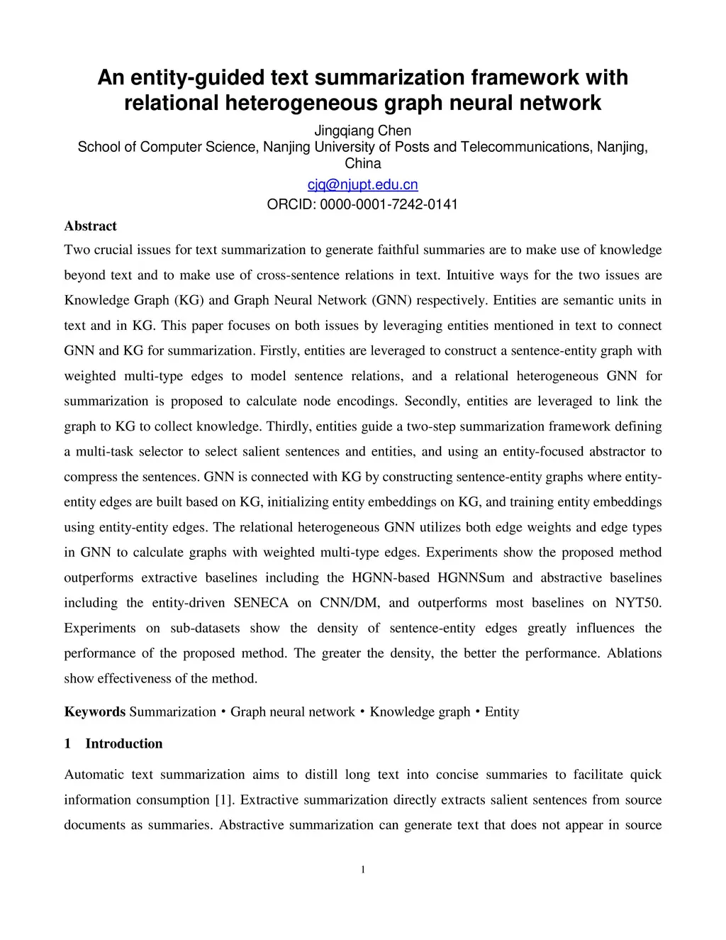 An entity-guided text summarization framework with relational