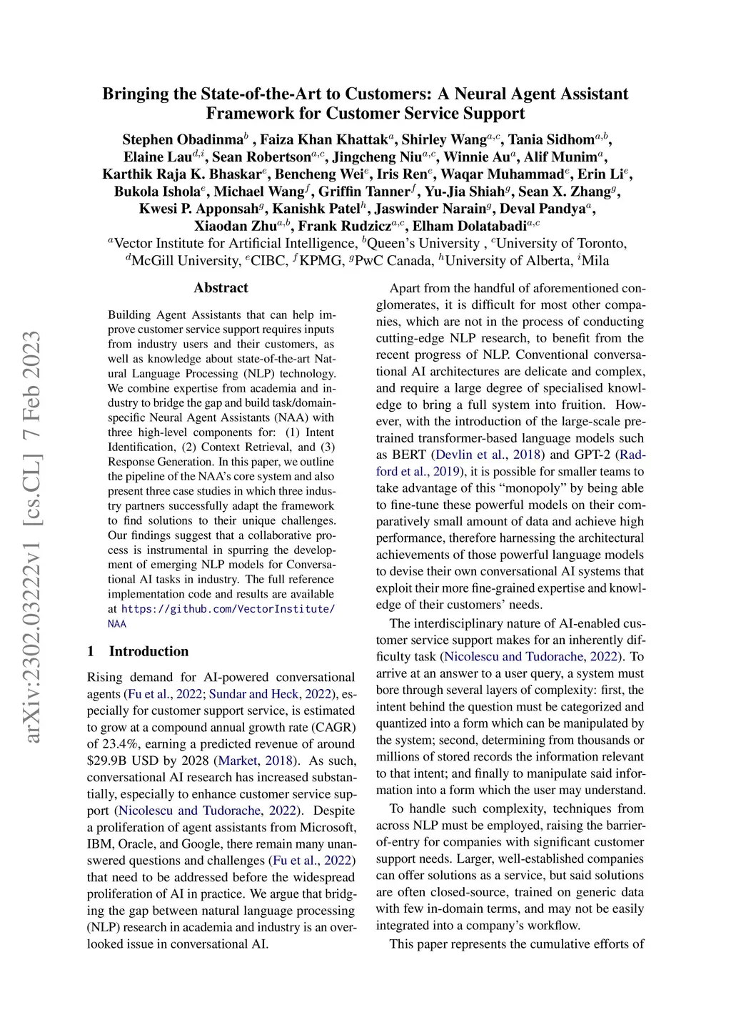 Bringing the State-of-the-Art to Customers: A Neural Agent Assistant