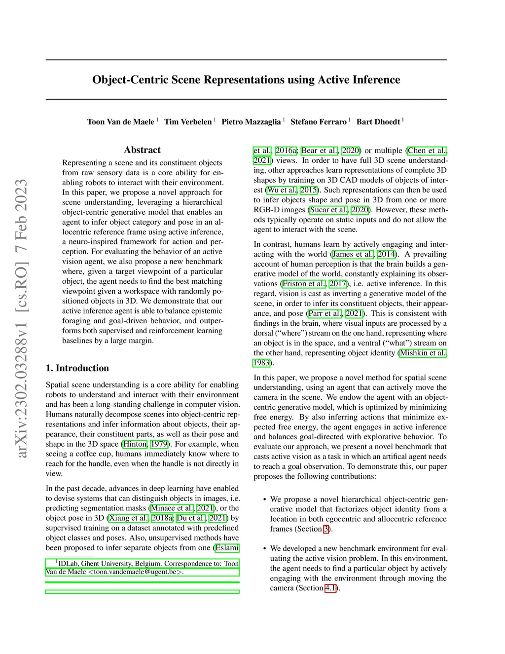 Representing a scene and its constituent objects from raw sensory data is a core ability for enabling robots to interact with their environment. In this paper, we propose a novel approach for scene understanding, leveraging a hierarchical object-centric generative model that enables an agent to infer object category and pose in an allocentric reference frame using active inference, a neuro-inspired framework for action and perception. For evaluating the behavior of an active vision agent, we also propose a new benchmark where, given a target viewpoint of a particular object, the agent needs to find the best matching viewpoint given a workspace with randomly positioned objects in 3D. We demonstrate that our active inference agent is able to balance epistemic foraging and goal-driven behavior, and outperforms both supervised and reinforcement learning baselines by a large margin.