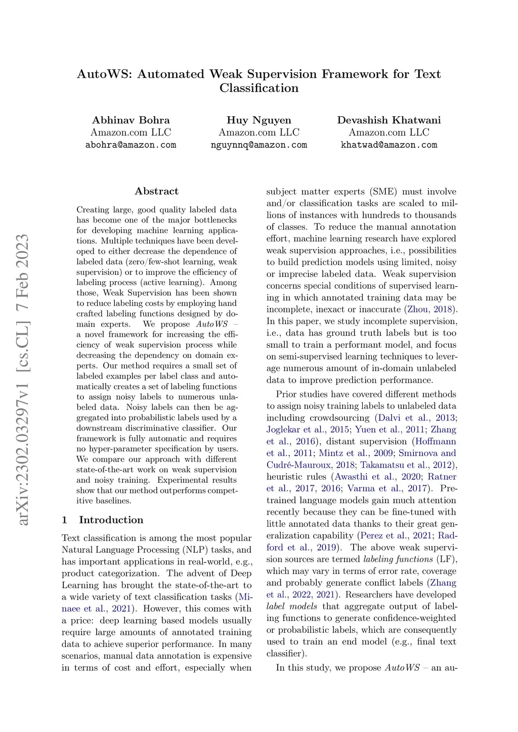 AutoWS: Automated Weak Supervision Framework for Text Classification