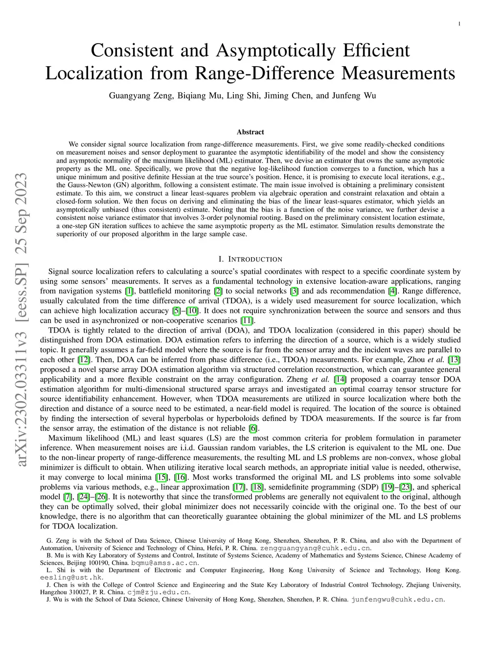 Consistent and Asymptotically Efficient Localization from