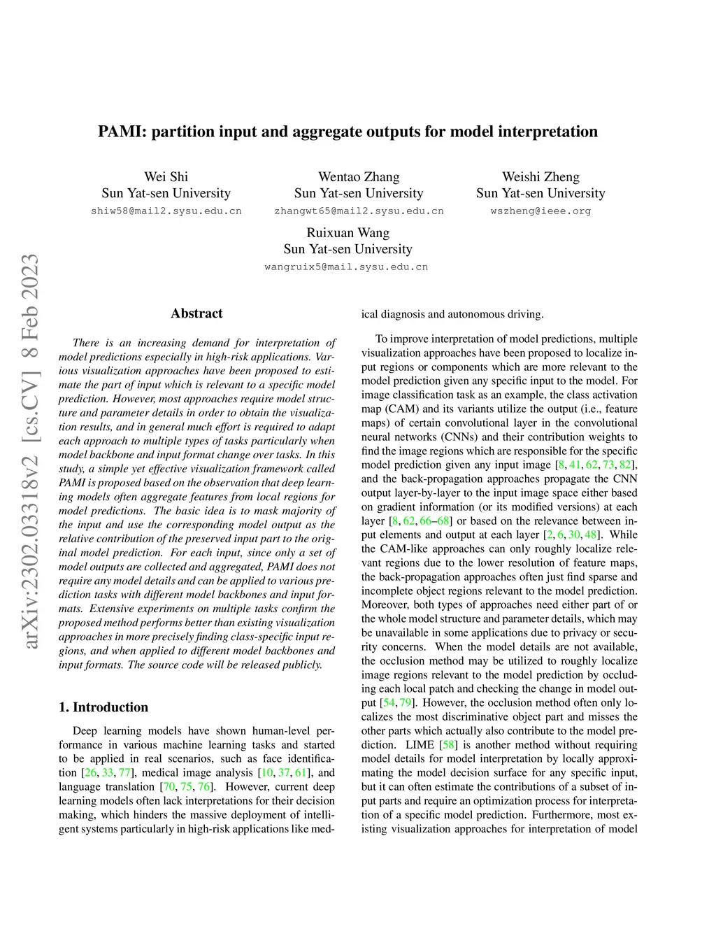There is an increasing demand for interpretation of model predictions especially in high-risk applications. Various visualization approaches have been proposed to estimate the part of input which is relevant to a specific model prediction. However, most approaches require model structure and parameter details in order to obtain the visualization results, and in general much effort is required to adapt each approach to multiple types of tasks particularly when model backbone and input format change over tasks. In this study, a simple yet effective visualization framework called PAMI is proposed based on the observation that deep learning models often aggregate features from local regions for model predictions. The basic idea is to mask majority of the input and use the corresponding model output as the relative contribution of the preserved input part to the original model prediction. For each input, since only a set of model outputs are collected and aggregated, PAMI does not require any model detail and can be applied to various prediction tasks with different model backbones and input formats. Extensive experiments on multiple tasks confirm the proposed method performs better than existing visualization approaches in more precisely finding class-specific input regions, and when applied to different model backbones and input formats. The source code will be released publicly.